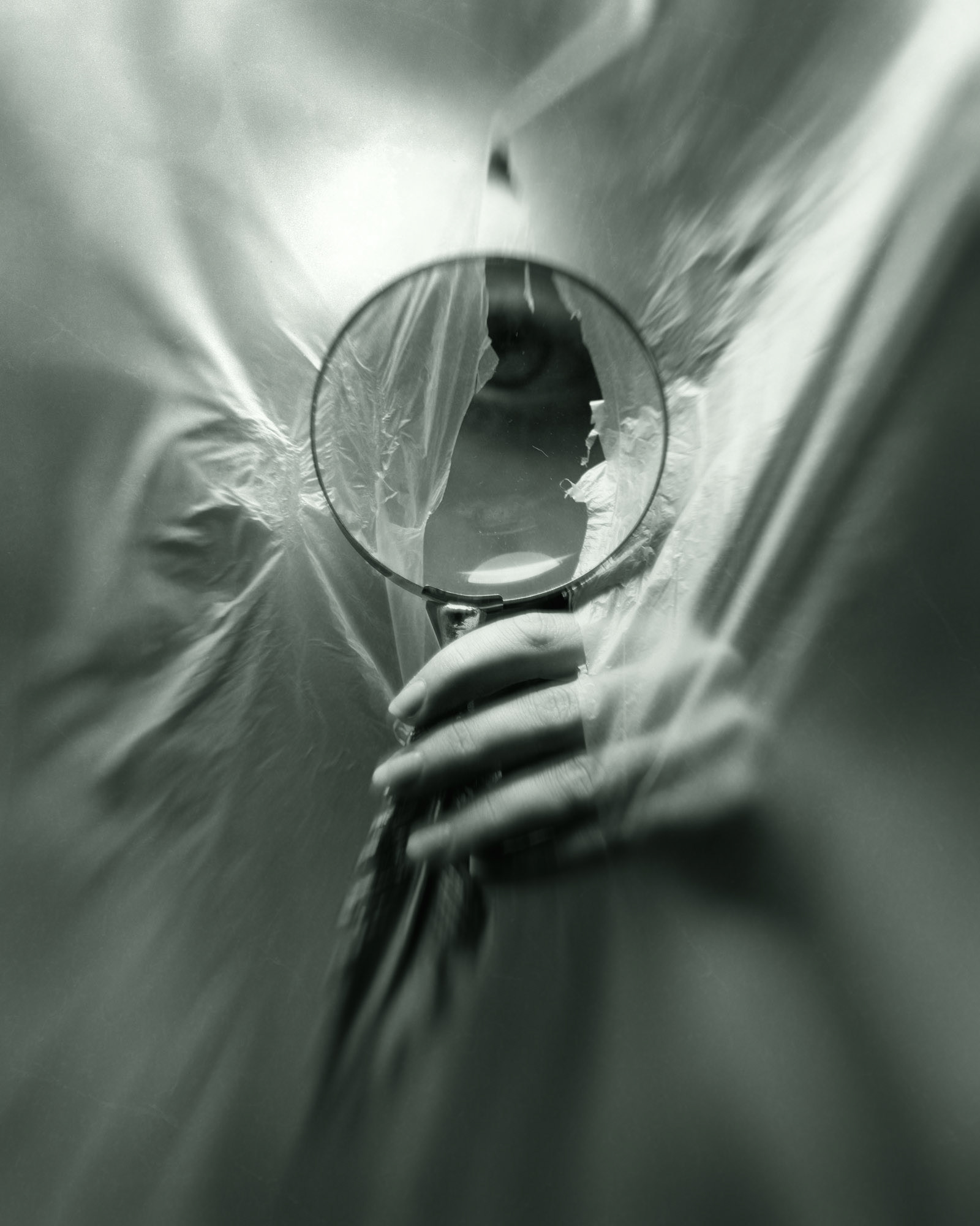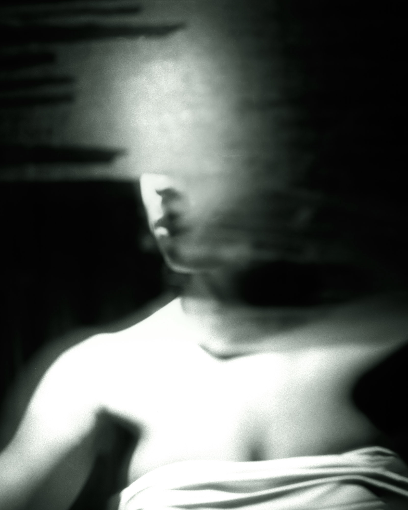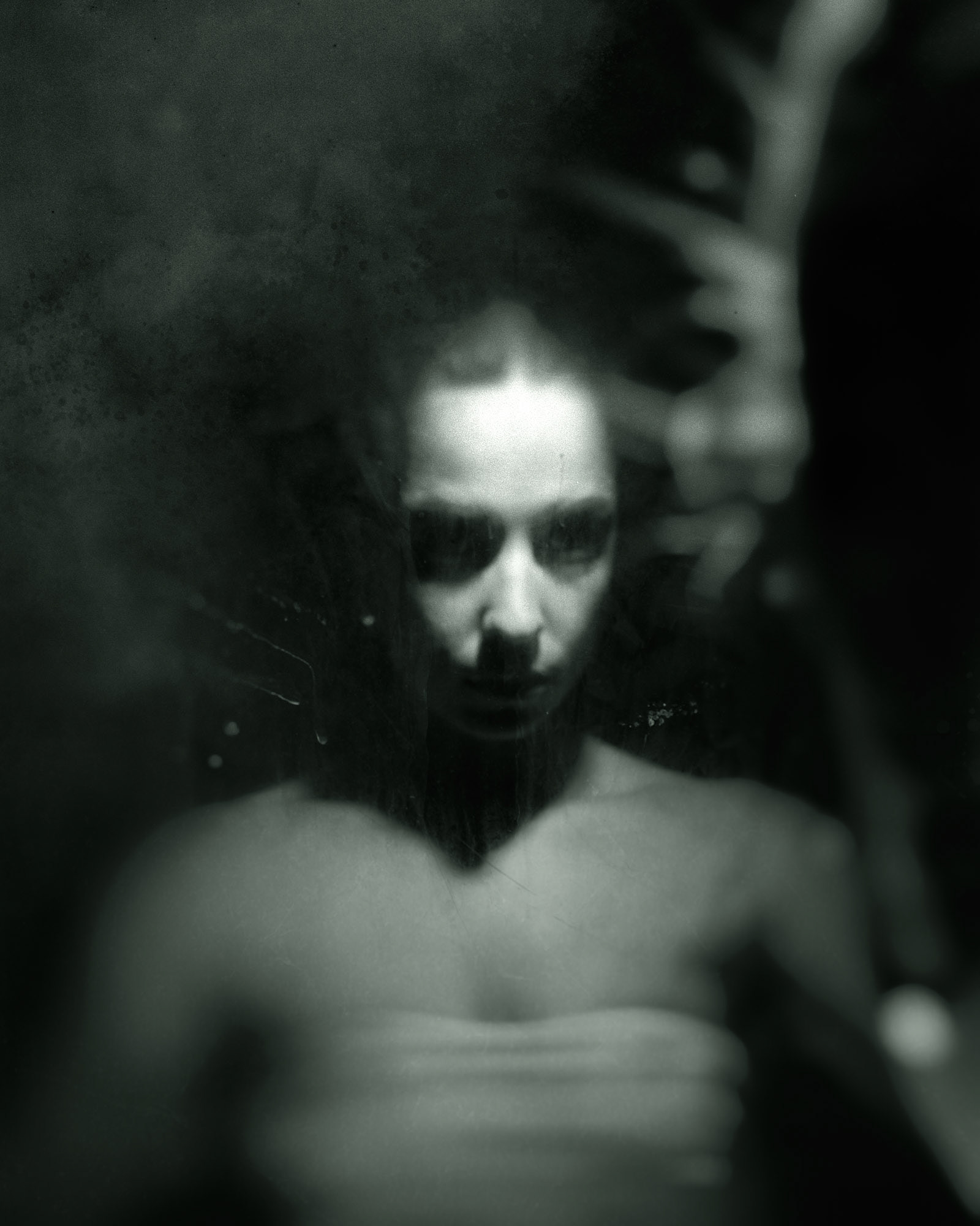 This collection brings together images from multiple bodies of work, each drawn to the elusive space between reflection and concealment. Figures emerge through veils, milky glass, and fractured mirrors, always partly obscured, always slipping from definition. These photographs resist clarity, offering not portraits but impressions, not stories but atmospheres.