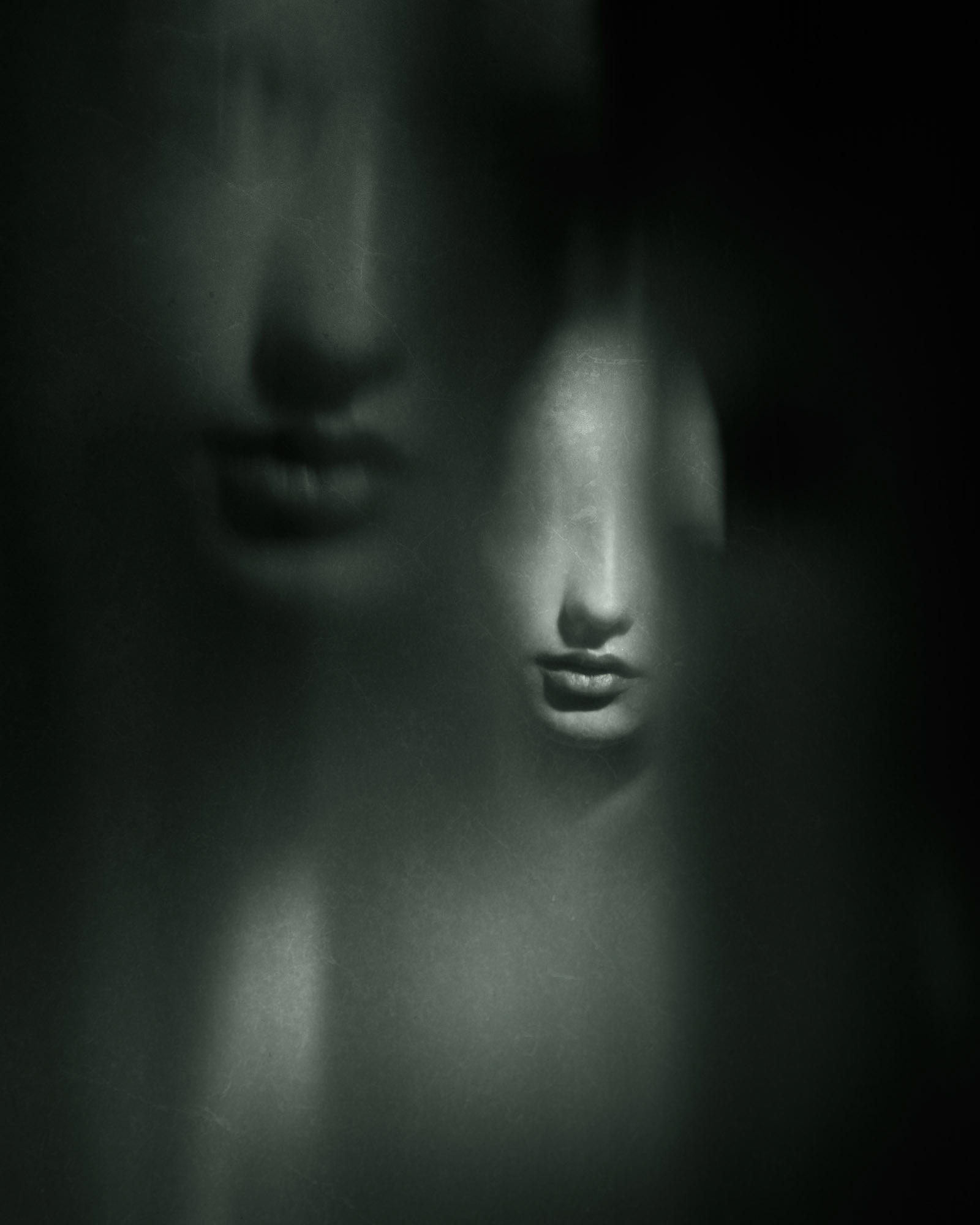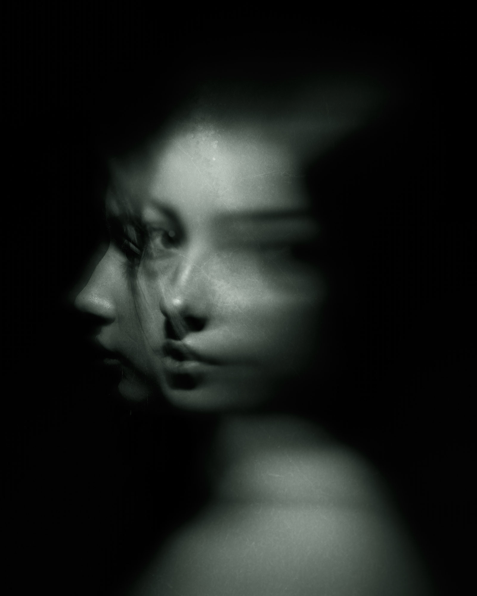 A series of black and white photographs exploring the fragile threshold between presence and absence. My intention was to evoke the fleeting clarity of a match struck in the dark—when there is just enough light to glimpse another, and then it’s gone. These portraits are not records of identity, but echoes of an encounter, half-remembered and unresolved, like afterimages burned into memory.