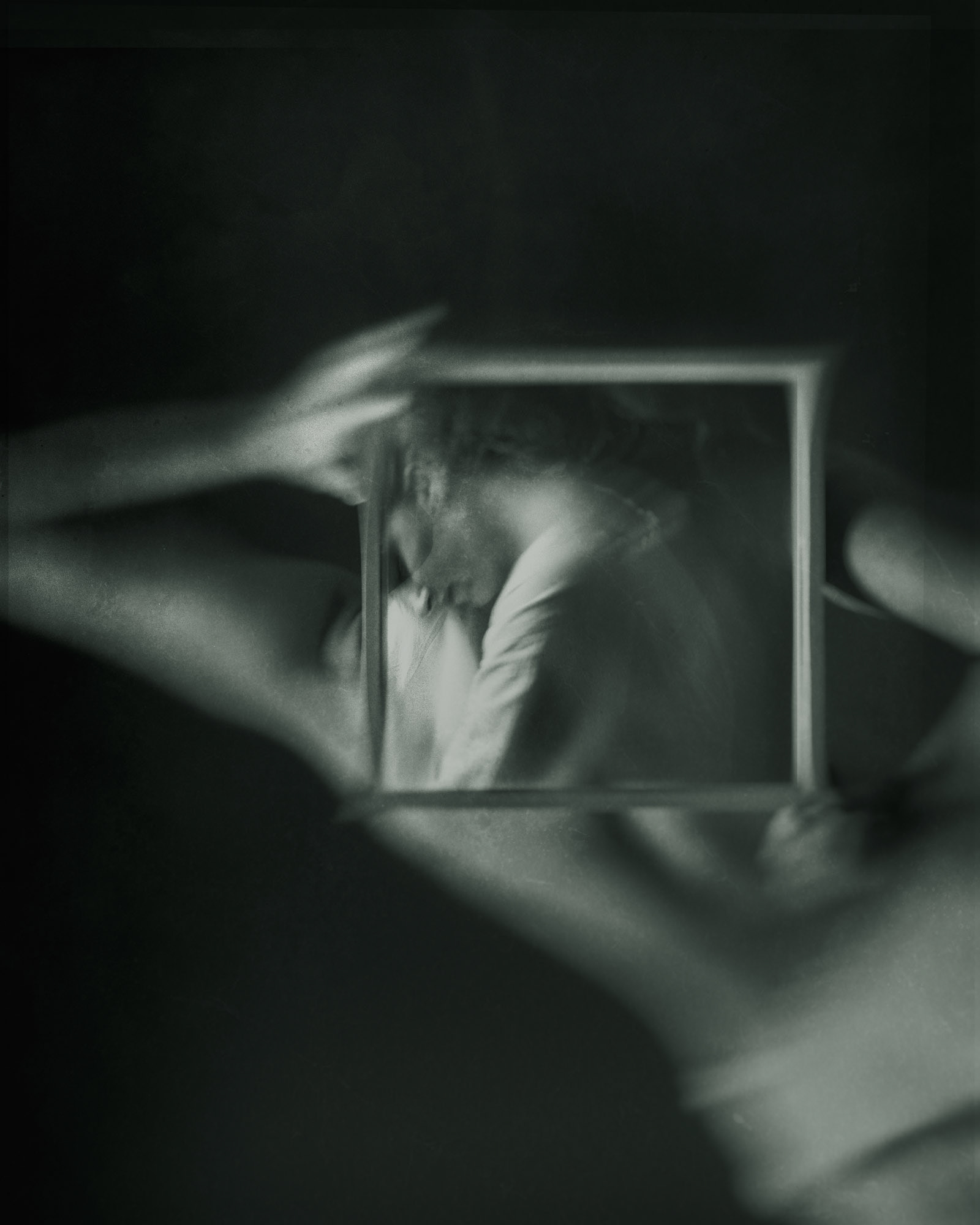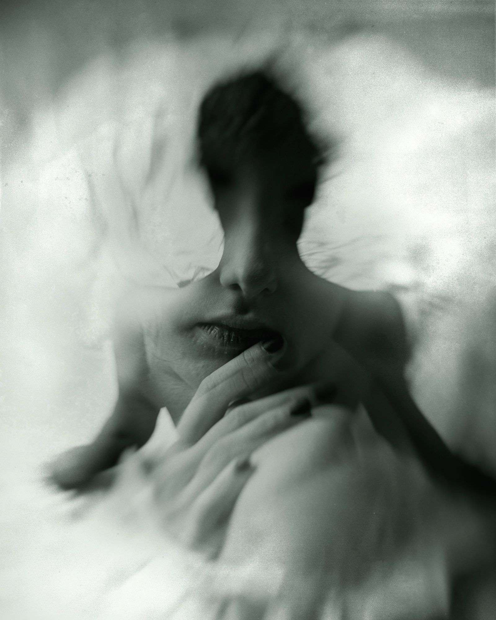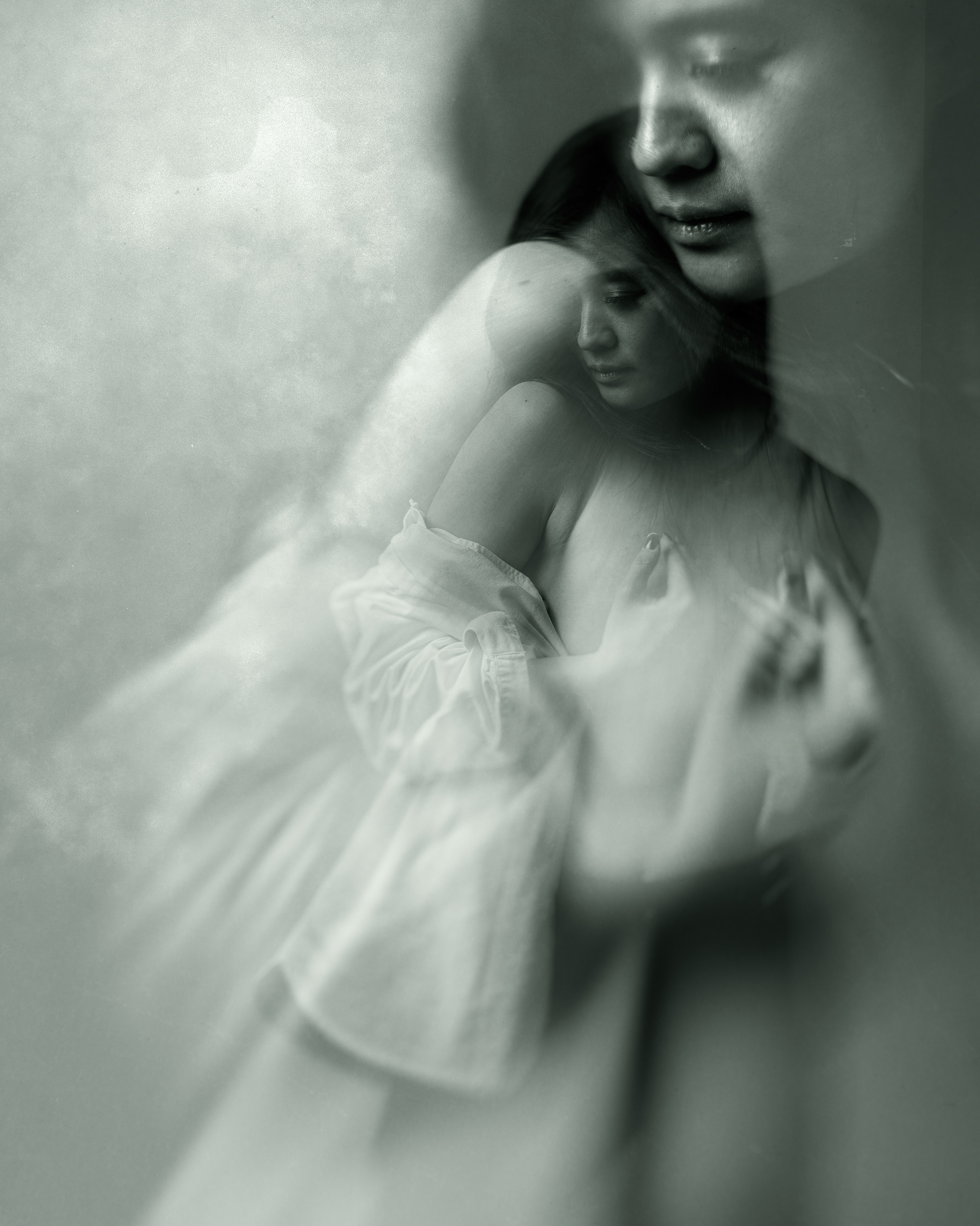 My intention was to reflect the tension between softness and cruelty. The photographs distort and fracture, like a broken mirror reflecting fragile moments—a calloused hand trembling at an unexpected touch, a face blurred in motion as if caught between retreat and surrender, shadows stretching over skin like scars. These are not images of love in its gentle embrace, but love against its nature—love despite, not because.