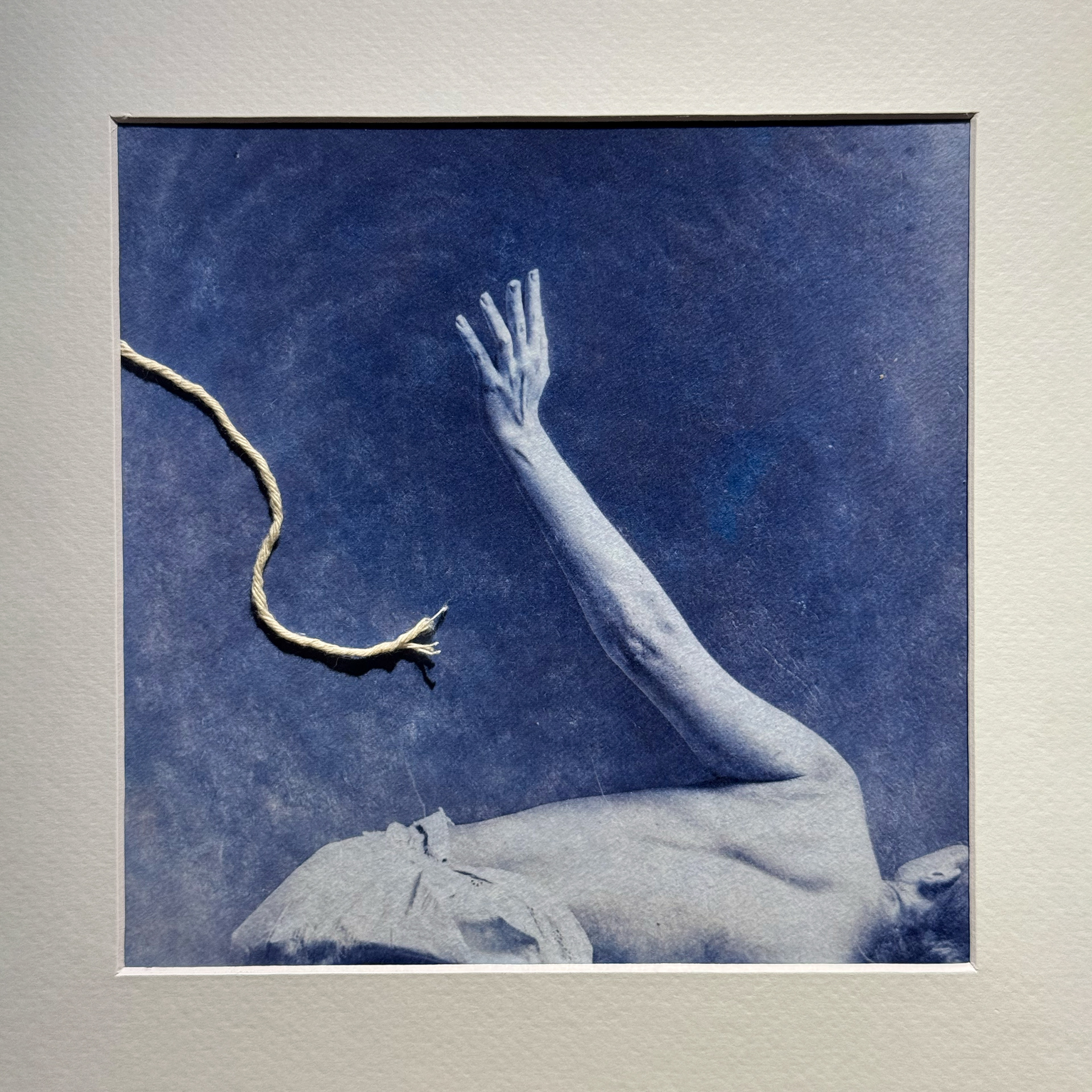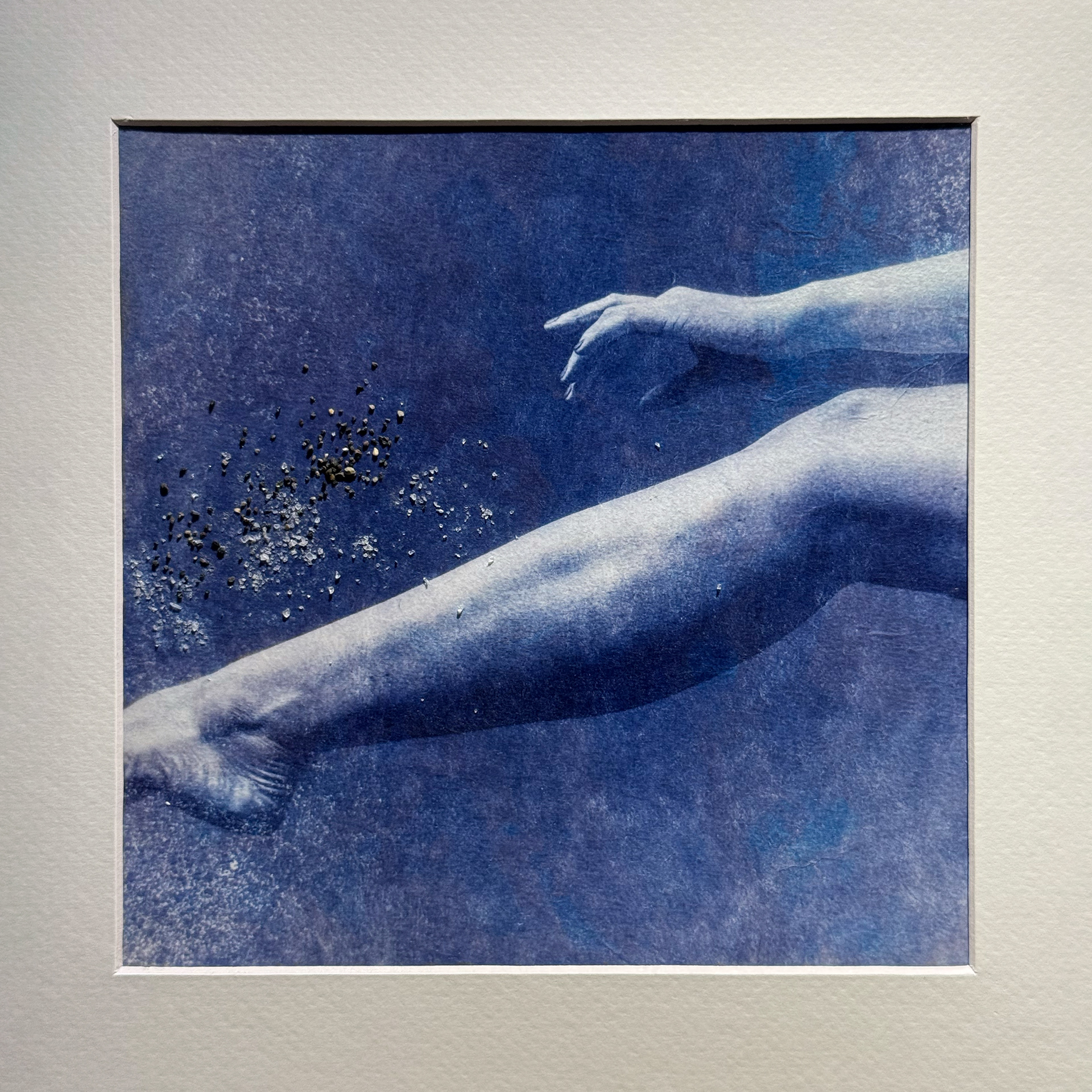 Initially, I explored this through absence alone. Over time, the work shifted. Rather than leaving the objects entirely unseen, I began to introduce them into the prints themselves. Using cyanotype, I embed fragments, feather, branch, sand, stone, rope, directly into the surface of the image.
